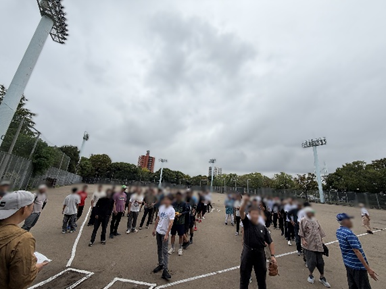 令和7年10月15日(水曜)前日はすごい雨でしたが、奇跡的に晴れ、ソフトボールの交流試合を熱田神宮公園(名古屋市熱田区)にて開催しました。